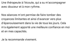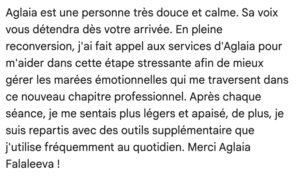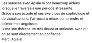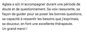 Cet entretien gratuit de 20 minutes par téléphone permet de faire connaissance, de répondre à vos interrogations et de nous assurer de l’adéquation entre vos attentes et mon approche.
